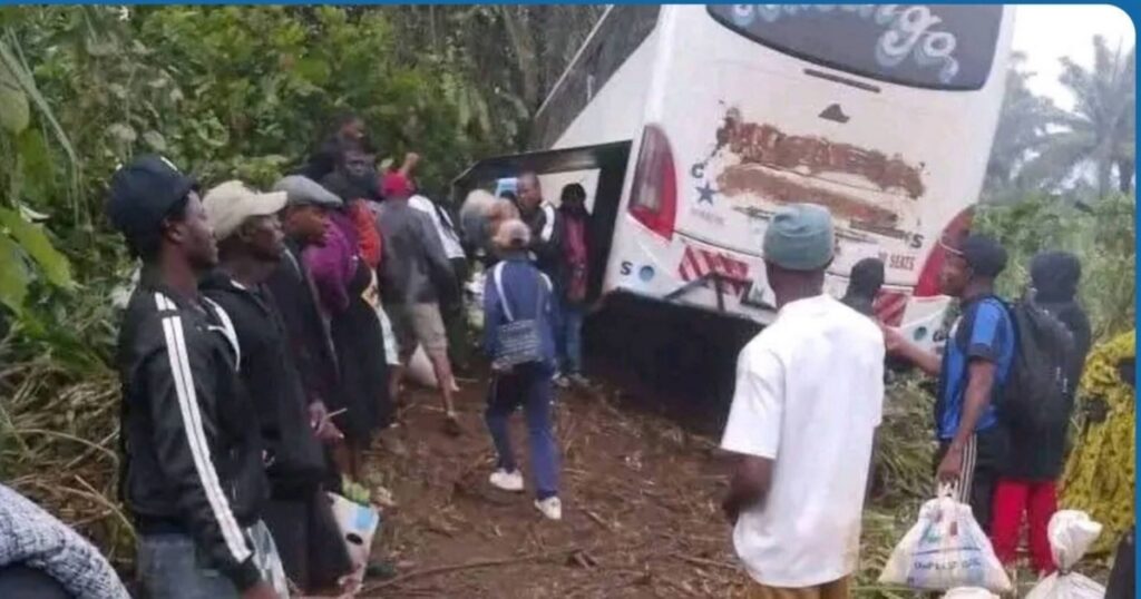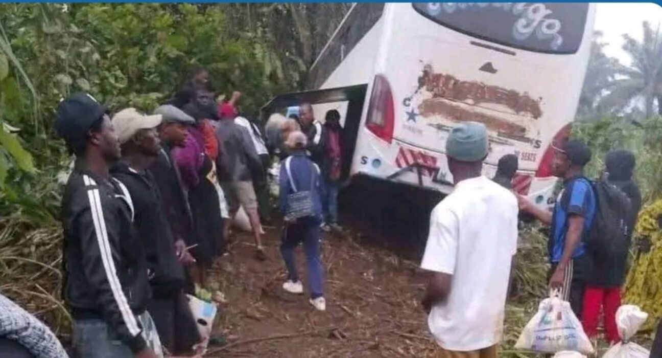 Il était environ 2 heures du matin quand le destin a basculé sur cette route sinueuse menant vers Buéa. Un bus bondé, quelque 70 passagers à bord, une nuit noire, et soudain — l’impensable. Un pneu éclate. Le chauffeur perd le contrôle. Le véhicule dévie dangereusement de sa trajectoire et s’engage dans une descente vertigineuse en direction d’un ravin. À l’intérieur, c’est la panique totale.
